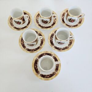 Vintage HI-LUXE Porcelain Hand Painted Espresso Demitasse Cup & Saucer 12pc Set