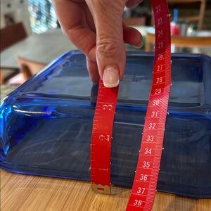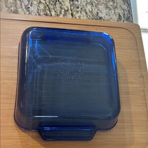 Stylish cobalt blue glass dish. Ideal for baking and serving. 2 quarts square glass baking dish. See photos for details and measurements. Excellent condition. Bundle with other items for discounts.