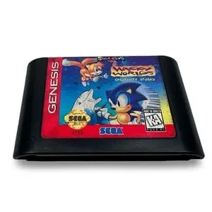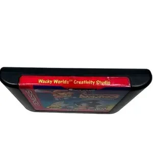 Wacky Worlds Creativity Studio Sega Genesis game cartridge. This fun and interactive game allows players to create their own wacky worlds and characters. Experience a unique blend of creativity and gaming perfect for artistic minds or for a nostalgic trip back to the 16-bit era.