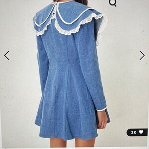 Sister Jane Dappled pure cotton oversized collar mini dress with bow in denim