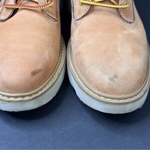 Timberland 6” Inch Premium Women’s Size 6.5 Boots Nubuck Wheat color. This boot has SensorFlex comfort system and OrthoLite footbed for a lightweight and comfortable fit. These are in very good condition but they do have a dark mark on each top toe area but these are very minor. These marks can be cleaned but I’ll leave that to the buyer. This listing is just for the boots, no box.