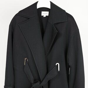 Made in Canada, this oversized Phoenix jacket from Beaufille's 2016 Autumn and Winter collection is crafted in a Black modal neoprene, and features long sleeves with grommet detailing, drop shoulders, an oversized lapel collar, a tie waist, and side slits.