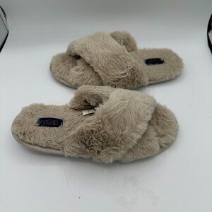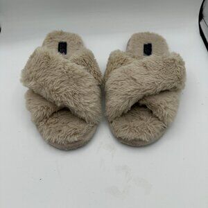 Rachel Roy Beige Faux-Fur Crossband Slippers Women's Medium (7-8)