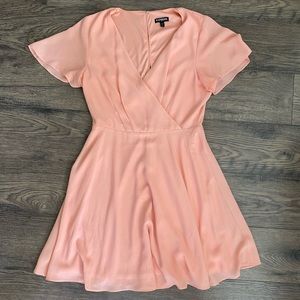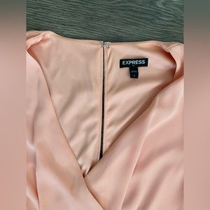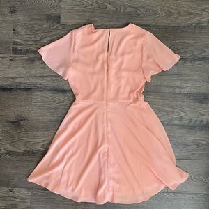 Flowy, light weight, and comfortable dress with keyhole detail on the back. Small staining on the front as shown in the photos, barely noticeable when you're actually wearing it. Worn twice (at a wedding and for a graduation). Pretty peach color!