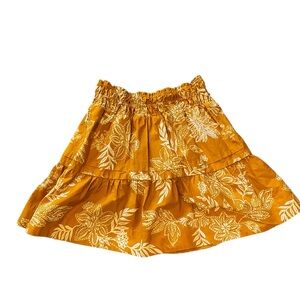 Yellow and white floral tiered mini skirt with elastic waist by Maeve from Anthropologie. Missing belt but EUC. Size XS measures waist to hem 17”, waist 12”