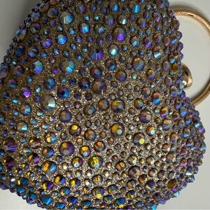 Ramla Amour iredescent AB Rhinestone Heart Clutch Evening Bag $189 New
