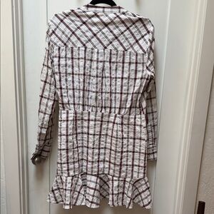 Veronica Beard Plaid Long Sleeve Dress - White, Red, Blue and Brown—Size L