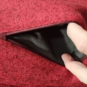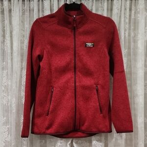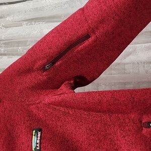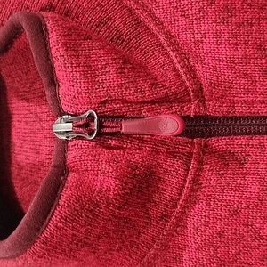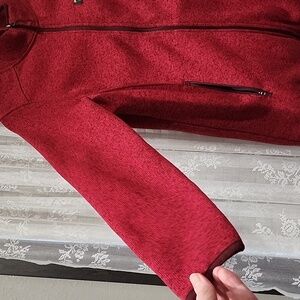 In excellent condition!! Beautiful red heathered with maroon trim (color name is Deep Rosewood) Full zip closure. Zippered pockets.