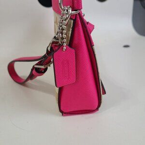 NWOT COACH Vintage Signature Logo Leather Canvas Wristlet Wallet Khaki Pink