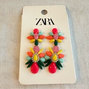 New Zara Multi Colored Jewel Dangle Pink Purple Earrings 1856/229