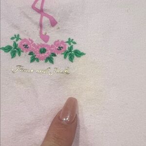 Lot of 2 Charming lavender tee with ruffled sleeves. Sweet pink tee featuring a flamingo design. Ideal for playful days.