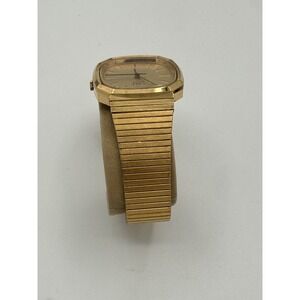 Vintage 1982 TIMEX Q Men's 32 mm Date Quartz Watch Gold Tone