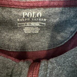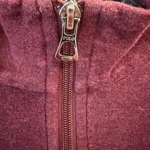 Polo Ralph Lauren quarter zip pullover in a heathered maroon tone with the classic embroidered pony at the chest. Easy everyday layer with a stand collar, ribbed hem and cuffs, and a branded “POLO” zipper pull. Soft cotton feel that works over a tee or button down for casual to smart-casual wear. Good condition with normal wear, no holes, stains, or major flaws noted.