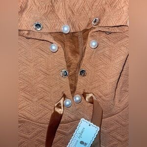 Elegant copper hoodie with unique texture. Features satin ribbon detail.