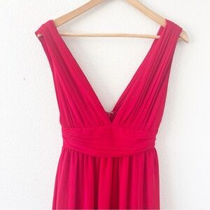 Lulus Heavenly Hues Deep V-Neck Formal Gown Maxi Dress in Red size S. Make a statement in this Lulus Heavenly Hues red maxi dress, a stunning deep V-neck formal gown that flows beautifully and photographs like a dream. Perfect for weddings, formal events, galas, bridesmaid looks, or special occasions.