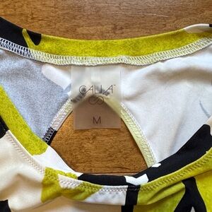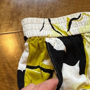 Stylish floral swim coverup set. Includes long-sleeve top and shorts. Features bold black, white, and yellow/green design. Perfect for beach or poolside. In great used condition.