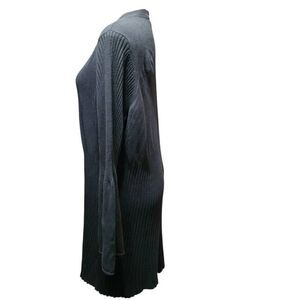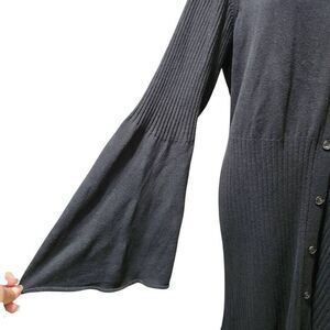 Du Jour Black VNeck Button front Ribbed Sweater Dress Flared Sleeve Boho XL