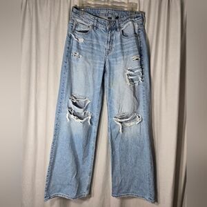 American Eagle Low Rise Baggy Wide Leg Jeans Distressed Sz 2