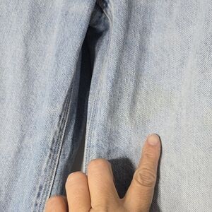 the main pic is for reference of fit, but the hem in not raw and distress pattern slightly different