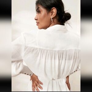 Banana Republic Factory Ivory White Balloon Sleeve Shirt Dress