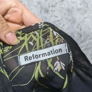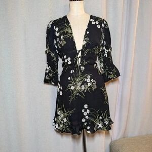 Reformation Black Mini Dress Laurelei Floral Cottagecore Deep V Size 0