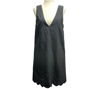 Stylish black dress featuring a scalloped hem and sleeveless design. Perfect for any occasion.