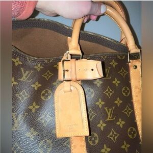 Iconic Louis Vuitton design. Features signature monogram pattern. Ideal for stylish travel.