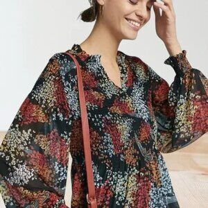 Beautiful Anthropologie sheer lined smocked blouse in a size Large.