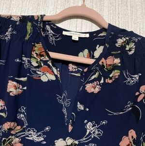 New without tags from the brand Fun 2 Fun in a size XS. I was told this was new without tags, but I have no way to verify this. It does not show any signs of wear. This is a popular brand sold through stitch fix. It is a gorgeous lightweight blouse. It has a solid blue background with a beautiful floral print throughout. I do not see any flaws with the top. Please review all pictures and ask any questions you may have.