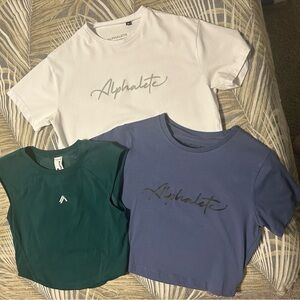 Alphalete White (XS), Green (S) and Blue(S) Crop Shirt Bundle. Lightly worn.