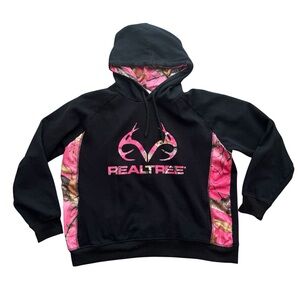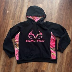 Cozy Realtree pullover hoodie featuring pink camo accents and classic deer logo. Perfect for the outdoors or casual cozy wear.