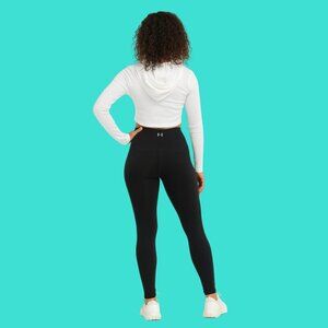 Sleek, sporty, and perfect for active or everyday wear — these Under Armour fitted black leggings feature bold aqua + white side stripes for that athletic pop. Made from UA's signature performance fabric with sweat-wicking, 4-way stretch comfort and a supportive high-rise waistband, they’re built for movement and style.