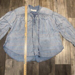 We the Free People Stripe Peasant Boho Lace Up Shirt Relaxed Blue Pink Size S