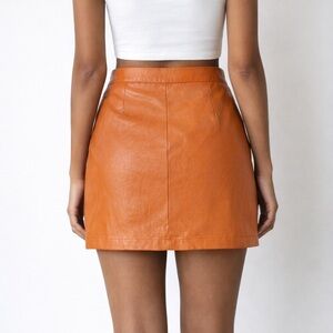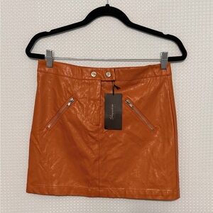Shinestar Burnt Orange Faux Leather Mini Skirt Zip Pocket Moto M