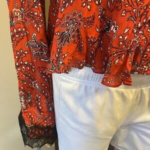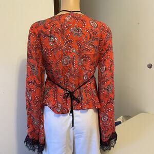 Cinq A Sept Blouse Women S 100% Silk Crop Tie Top Floral Multicolor Fairy Grunge
