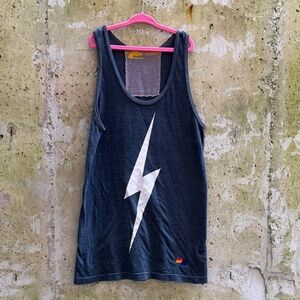 Aviator Nation Charcoal Tank Top with White Bolt, Small