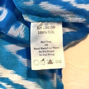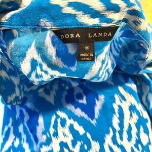 Dora Landa,Pure Silk Blue Ikat Button Up Neck Blouse, Gorgeous Colors, M
