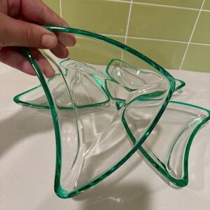Vintage Green Flashed Edge Boomerang Glass Dishes — Set of 4