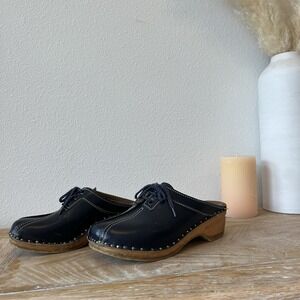 Bastad Original Leather Swedish Clogs Blue Tie Size 36 Cottage Core European