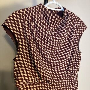 EUC Ann Taylor Dress Houndstooth Blouson & Flare Midi Brown Cream Size 2
