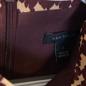 Excellent used condition, measurements of n photos, Ann Taylor Dress Houndstooth Blouson & Flare Midi Brown Cream Size 2