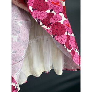 Maggy London Women's Floral Sleeveless A-Line Dress Size 10 Ivory Base Pink Red