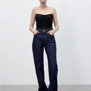 Zara CORSETRY-INSPIRED TULLE CROP TOP Black XS
