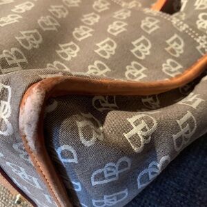 Gently Loved Dooney & Bourke Diaper Bag .. This bag has been gently loved see normal wear on corners .. comes with original Diaper Changing Pad.. the bag is leather trimmed along with long leather straps.. You wont be disappointed..