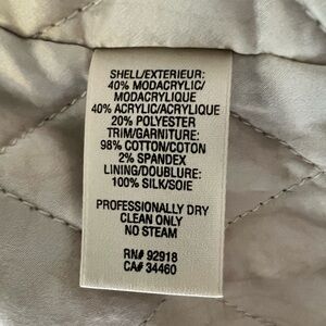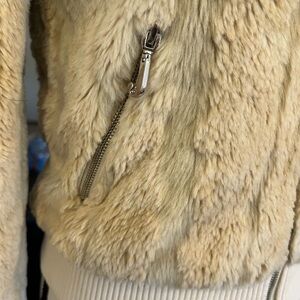 Cream beige color faux fur zip up jacket with a hood & zippered pockets