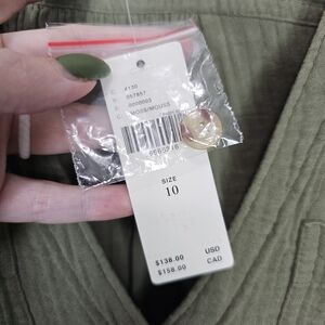 NWT Anthropologie Maeve Katie Gauzy Textured Utility Dress Olive Green 10