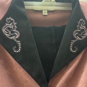 VINTAGE! Dress Barn Mauve Blazer with Embroidered Collar and skirt set