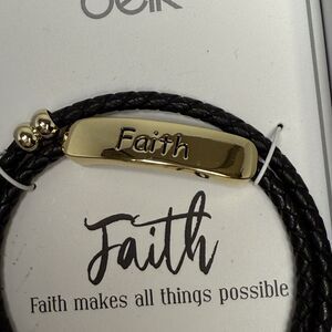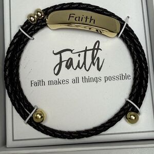Beautiful inspirational bracelet by Belk, with a gold tone metal bar pendant with the word faith on it. Bracelet is a braided leather and a double wrap thats adjustable for all sizes. Comes in gift box with a beautiful message. Comes from a smoke free home. Retail cost $35