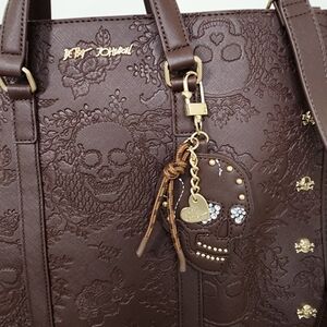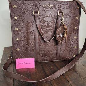 Betsey Johnson Chocolate Large Skull Embossed XOMATTIE Tote Bag Whimsigoth