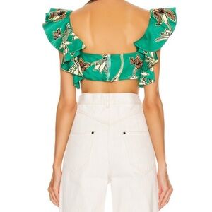 Alexis Hoshi Flutter Sleeve Crop Top in Jade Green Orchid Size M
